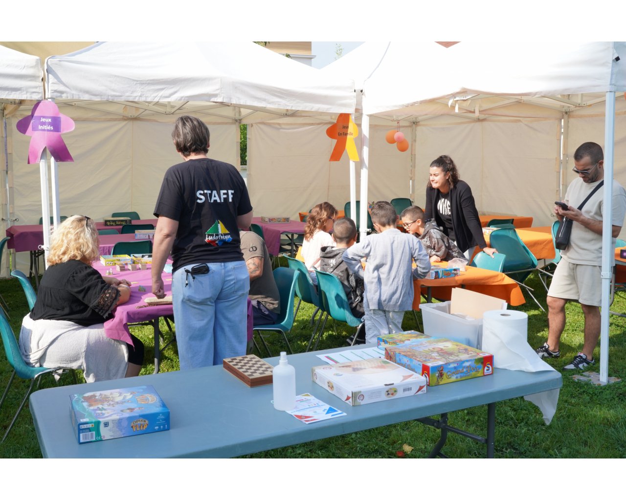 Jeux d'ambiance, de stratégie, de réflexion, stand maternelle, espace petite enfance, découvertes de jeux, structures gonflables, stand de restauration, stand jeux en bois géants, revendeur de jeu « JEU'MANJI ».