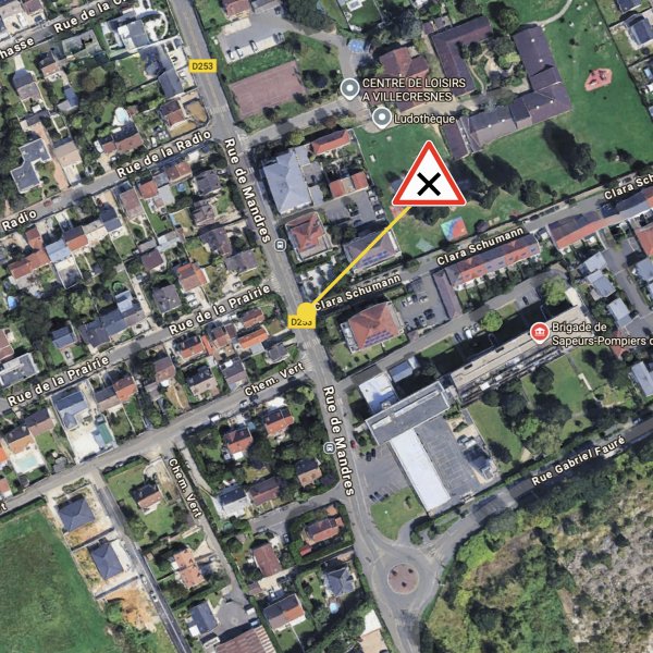 Les véhicules circulant sur la rue de Mandres en direction du centre de Villecresnes devront désormais céder la priorité à droite aux véhicules sortant de la rue Clara Schumann.