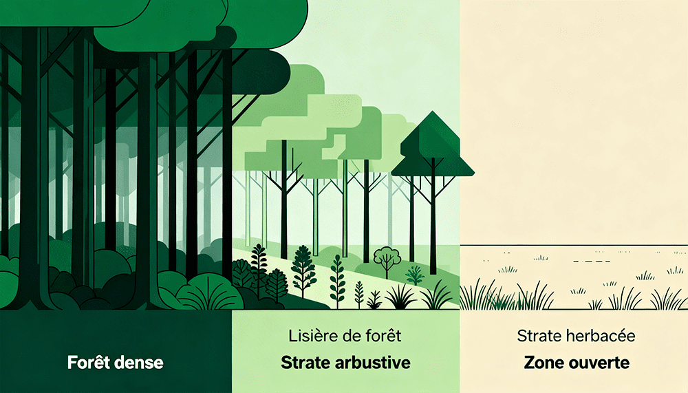 Ces lisières marquent la transition entre une zone forestière dense et un espace ouvert (prairie, champ ou zone pavillonnaire).