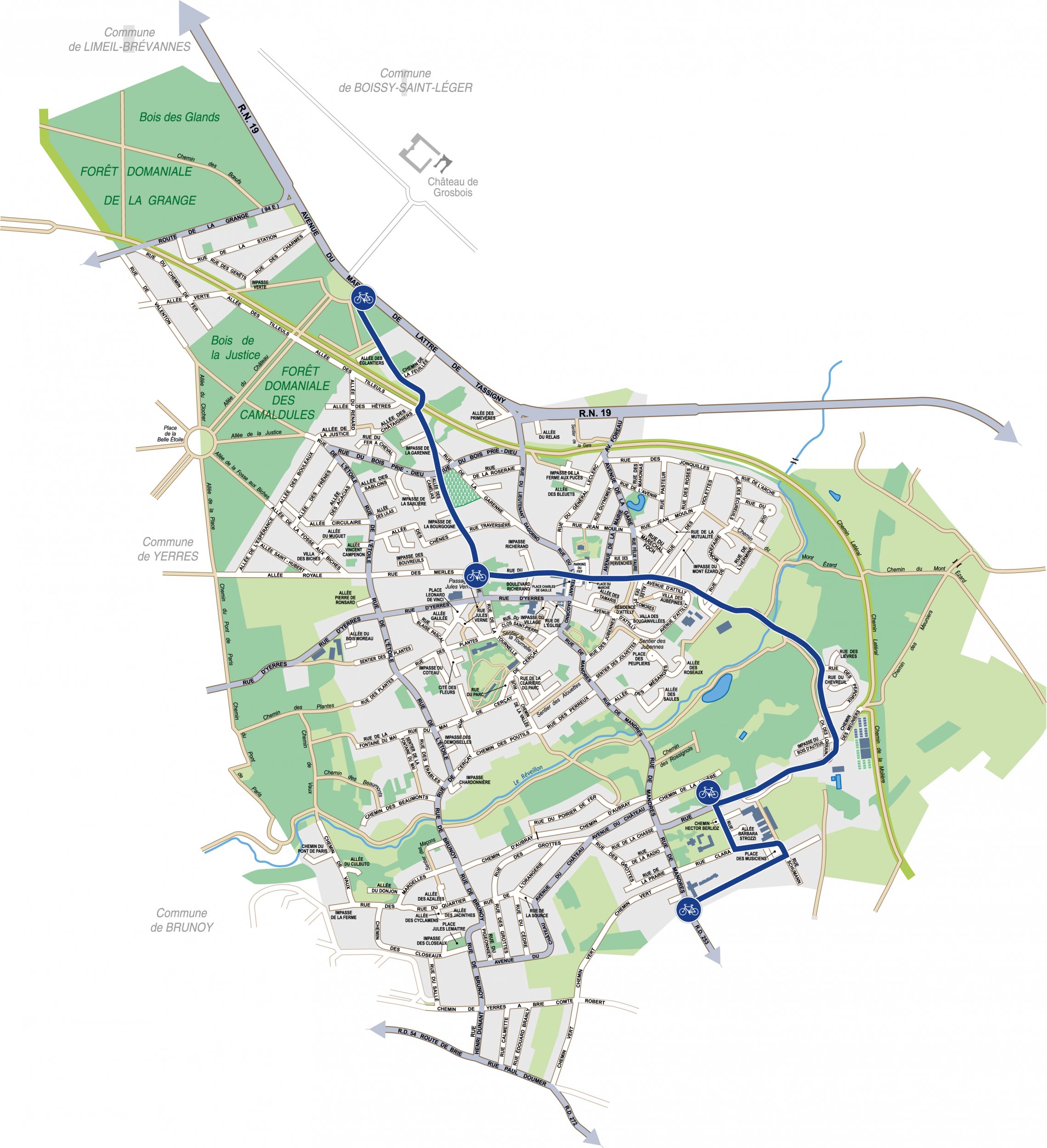 L'aménagement par le SyAGE des bords du Réveillon qui vient de s'achever entre la rue de Mandres et le Lac de Villecresnes participe à la valorisation des liaisons douces. Ce chantier n'était d'ailleurs qu'une étape. Deux autres phases sont prévues, afin de relier Yerres, et poursuivre à terme sur la Liaison Verte, autre liaison douce qui permet de suivre les bords de l'Yerres, de Villeneuve-Saint-Georges jusqu'à Varennes-Jarcy. Le sentier d'interprétation agricole du Plateau Briard est situé sur les communes de Périgny et Mandresles- Roses. Aménagé par l'ancienne Communauté de communes du Plateau briard, il se divise en 17 étapes le long de ses 8 kilomètres.